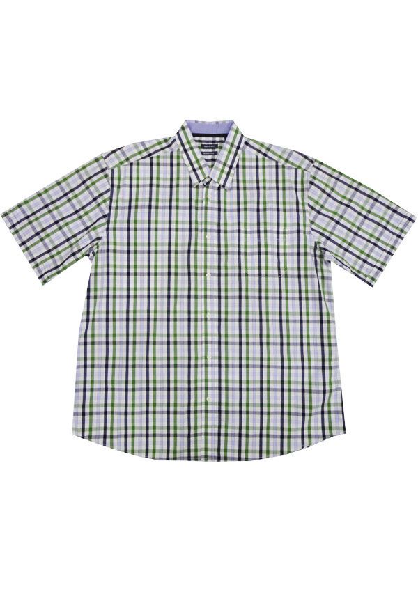 Back Bay Overcheck short sleeve shirt. With single chest pocket. Button collar. Made of Cotton.