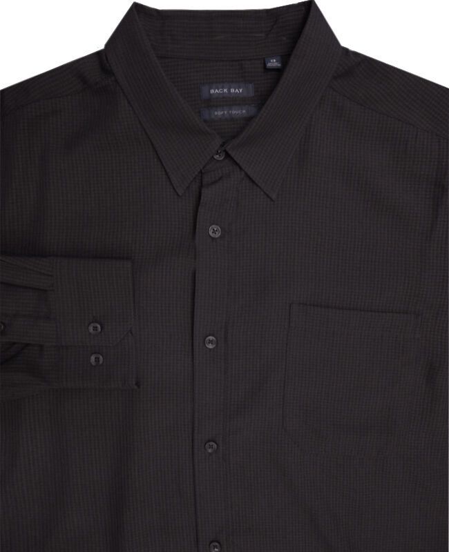 Backbay Microcheck long sleeve shirt with single chest pocket. Soft touch material. Made of Rayon/Polyester.