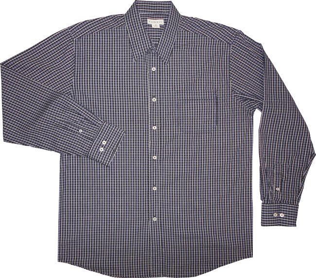 Backbay mini check long sleeve shirt with collar and pocket. Made in 100% cotton.