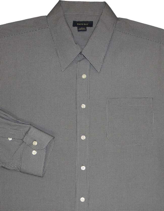 Backbay minicheck long sleeve shirt with collar and pocket. Rayon/ Polyester material. Soft to touch.