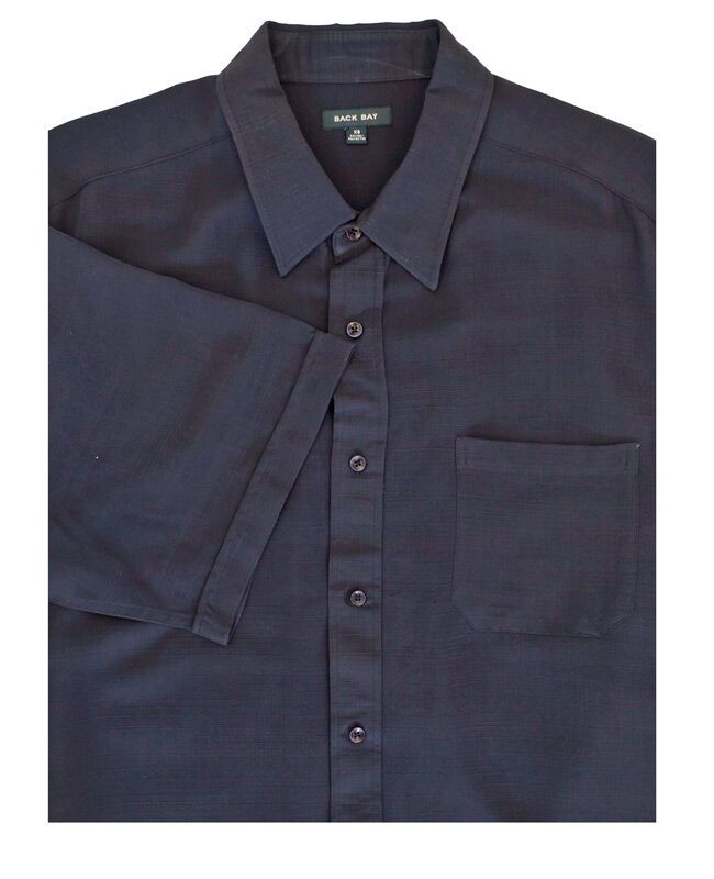 Backbay plain slub short sleeve shirt with single chest pocket. Made of Rayon/ Polyester.