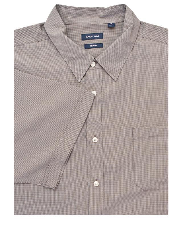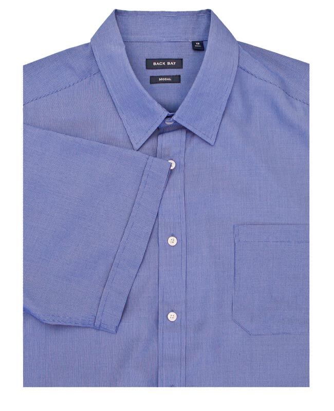 Backbay self check short sleeve shirt with single chest pocket. Modal material.
