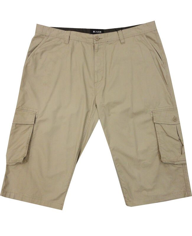 Blazer three quarter jam shorts with fitted waist, belt loops and fly zip. Two slant pockets, two back pockets and two cargo pockets. Made of 100% Cotton.