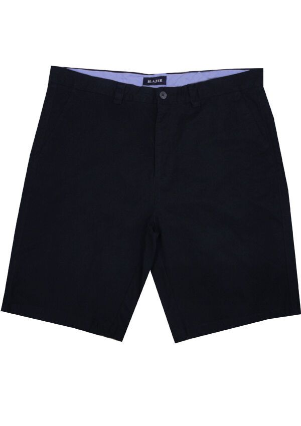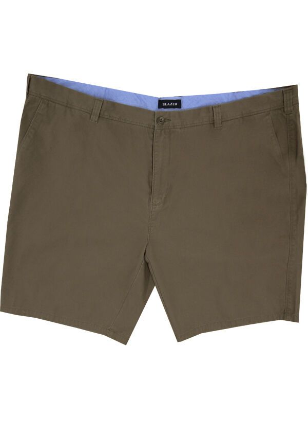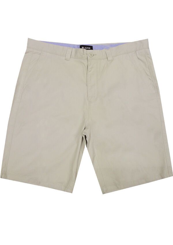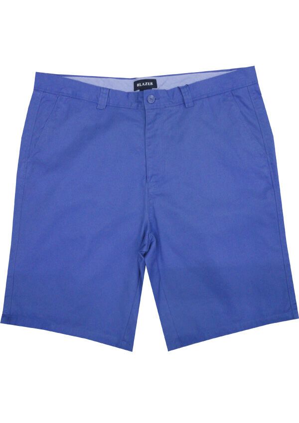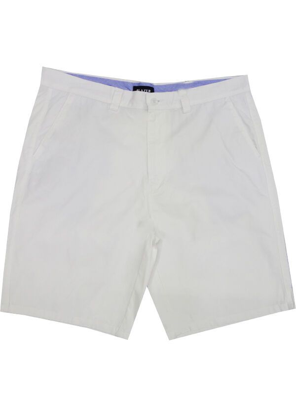 Blazer chino flat front fitted shorts with fly zip, two front slant pockets, one hidden coin pocket and two button down back pockets. Made of 100% Cotton.
