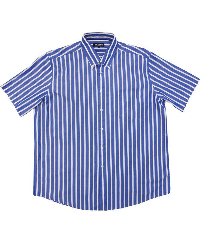 Blazer tyler striped short sleeve shirt with button down collar and single chest pocket. Made of 100% Cotton.