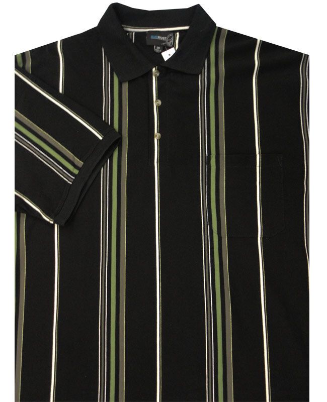 Blue Rivet vertical striped short sleeve polo with single chest pocket. Made of Cotton / Polyester.
