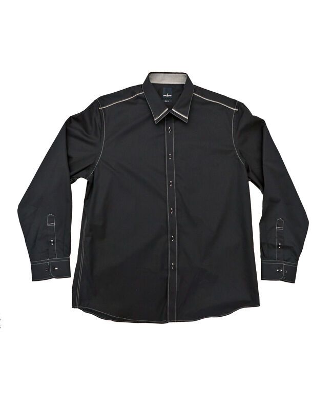 Boston stitch trim tall long sleeve shirt with collar attached. No pockets. Slim fit. Made of Cotton / Polyester.