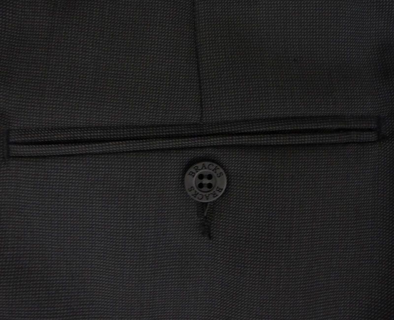 Bracks flat front tall trouser. Regular fit. Belt loops and zip fly. French bearer. Five pockets including coin pocket. Made of 65% Wool/ 35% Polyester. Inside leg measures 38" (97cm)