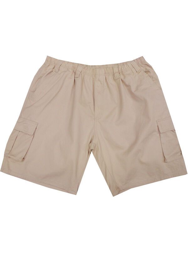 Bronco elastic waist cargo shorts.  With belt loops and zip fly.  Five pockets.  Made of Cotton.