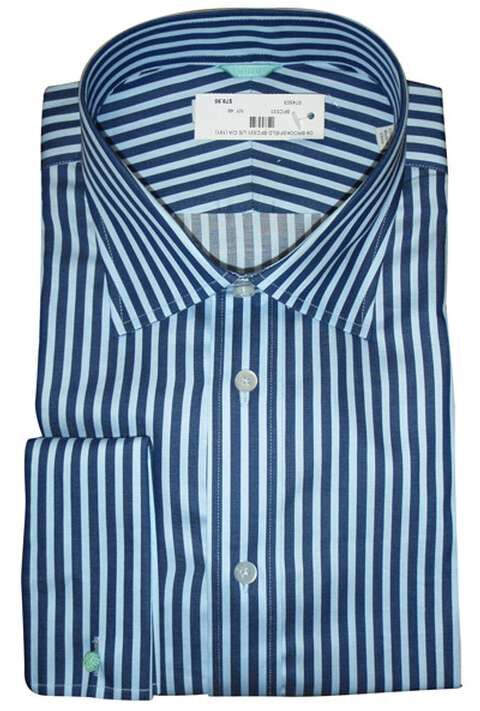 Brooksfield striped long sleeve shirt for business or casual with a french cuff and made from 100% cotton.