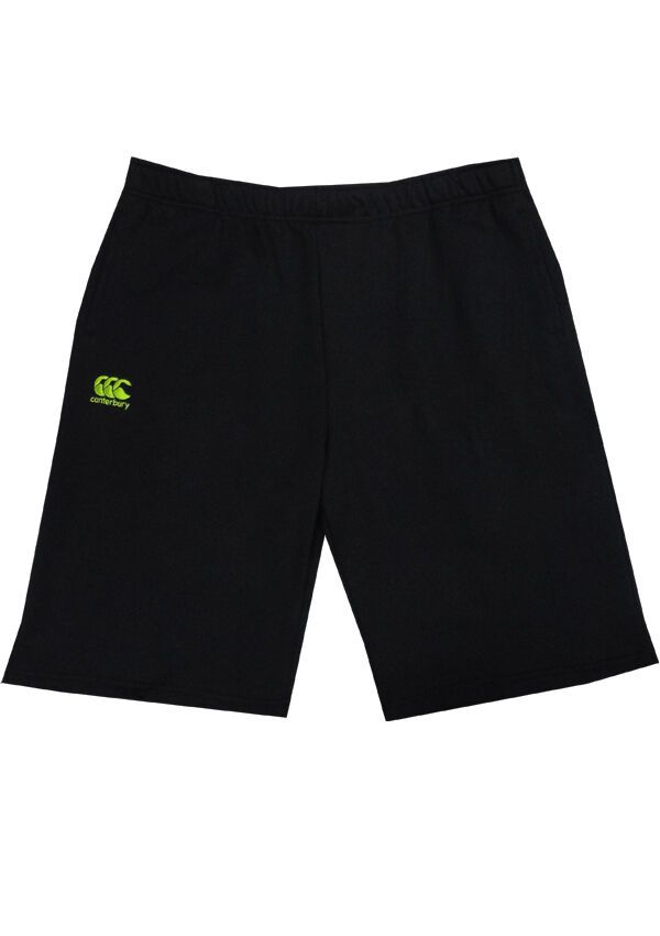 Canterbury Fleece shorts with elastic waist and draw string. Two pockets. Lime green waist band lining. Made of 60% Cotton/ 40% Polyester.