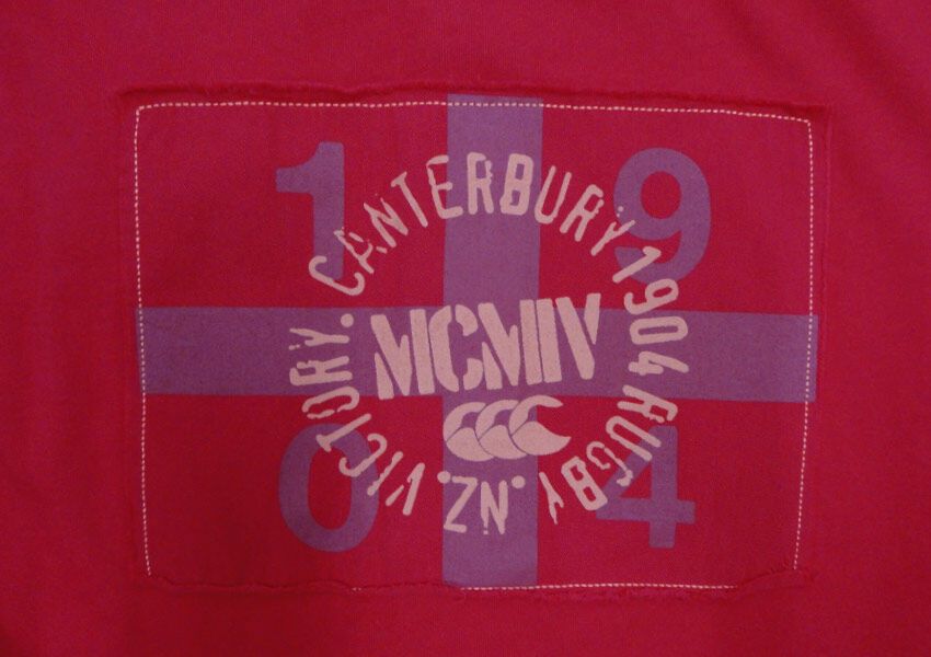 Canterbury Rugger short sleeve polo. With small print on front and large print on back. Made of 100% Cotton.
