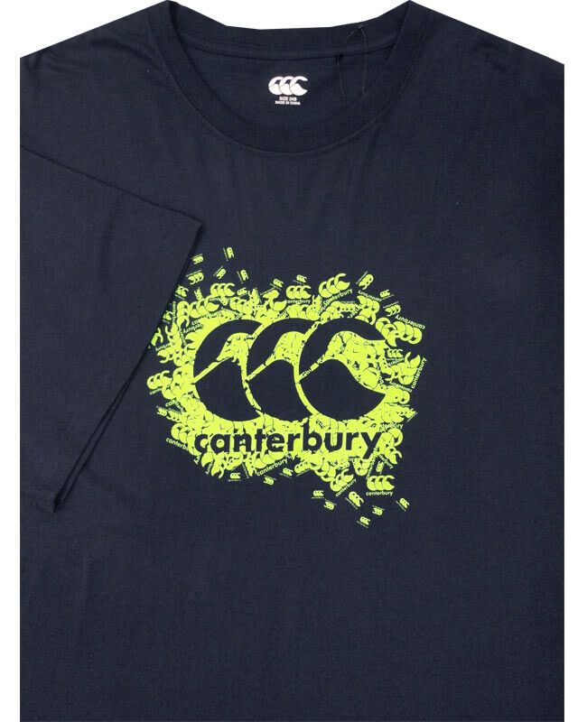 Canterbury scamble t-shirt with large fluro green print on chest. Made of 100% cotton. Nb. Green is slightly darker on t-shirt than the photo.