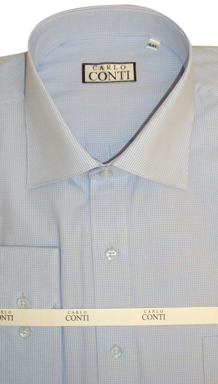 Carlo Conti Tall micro check long sleeve collar attached in 100% cotton featuring two piece collar for smartness and comfort, top fused collar for neatness and long life, high quality easy-care fabric, top fused cuff with two buttons cuff for personalized fit, top fused placket, tailored sleeve plaque, pleated cuff, pocket, top fused single needle armhole and side pleats on back yoke.