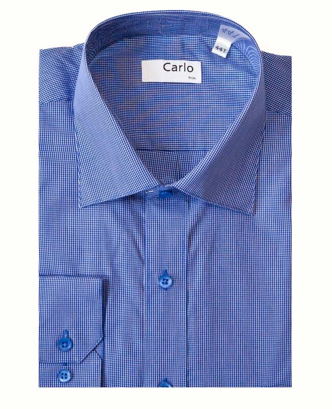 Carlo Conti Tall microcheck long sleeve business shirt with single chest pocket. Made of 100% Cotton.