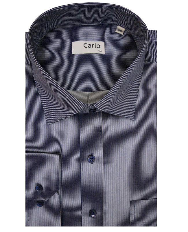 Carlo Conti long sleeve pinstripe business shirt. High quality, easy-care fabric. Single chest pocket. Tailored sleeve pacquet. Pleated cuff. Spare buttons included. Made of 100% Cotton.