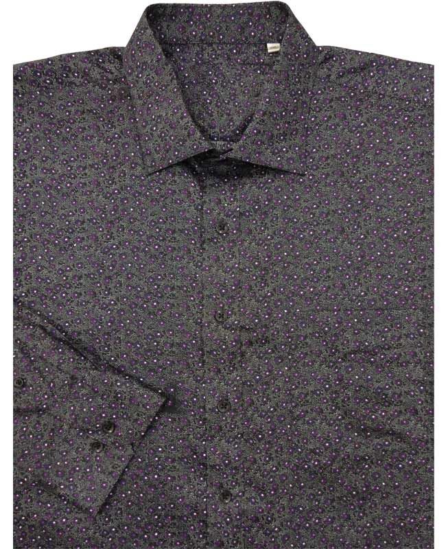Carlo Conti long sleeve shirt with small purple flowers all over. Single chest pocket. Made of 100% Cotton.