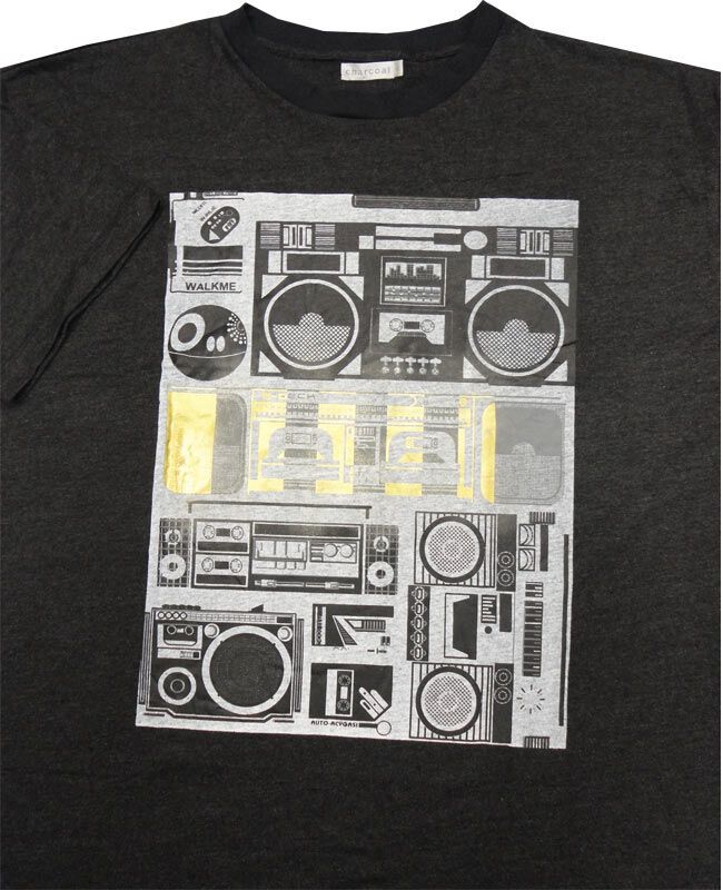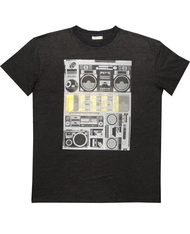 Charcoal Beatbox t-shirt with large print on chest. Made of 65% Cotton and 35% Polyester.