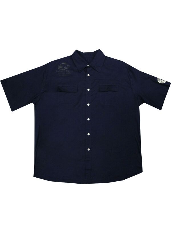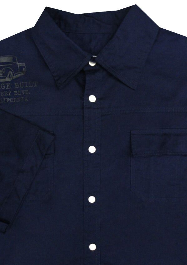 Charcoal Garage short sleeve shirt with two chest pockets. Clip-up buttons. Patch on sleeve. Print on back. Made of 100% Cotton.