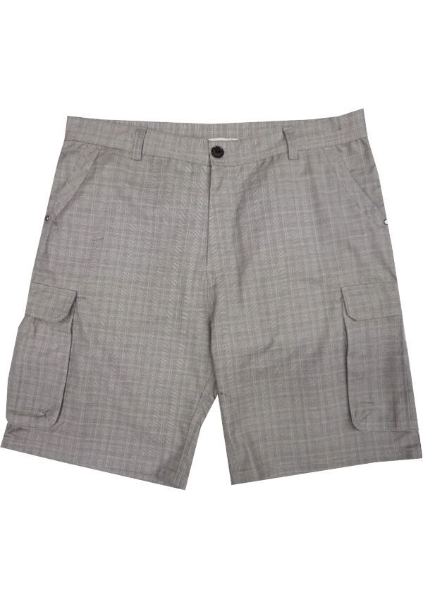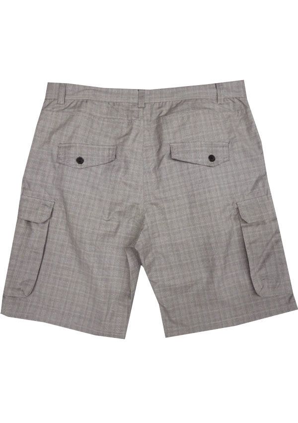 Charcoal Gingham cargo shorts with belt loops and zip fly. Six pockets. Made of 100% Cotton.