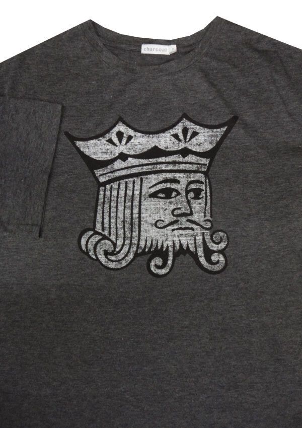 Charcoal King t-shirt. Made of 60% Polyester/ 40% Cotton.