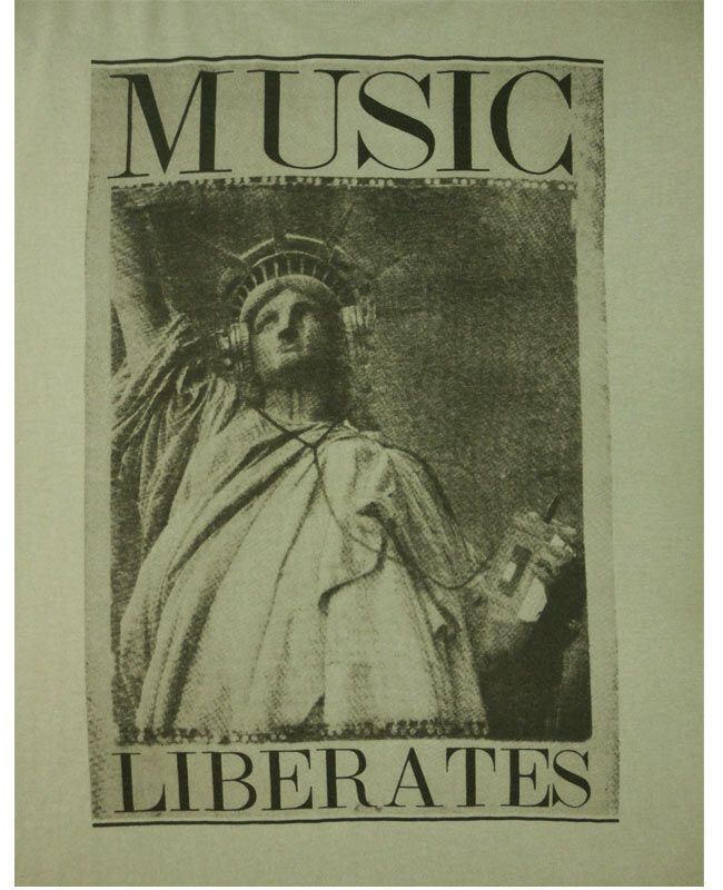 Charcoal music liberty short sleeve t-shirt with large print on chest. Made of 60% Polyester and 40% Cotton.