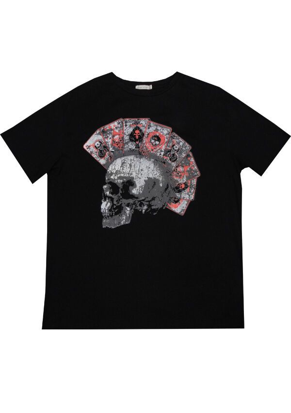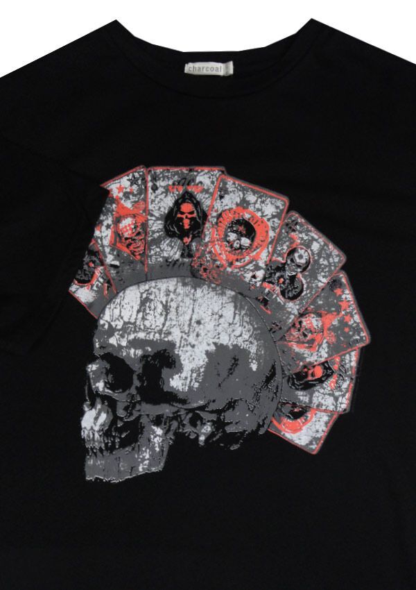 Charcoal Poker Skull t-shirt. Made of 55% Cotton/ 45% Polyester.