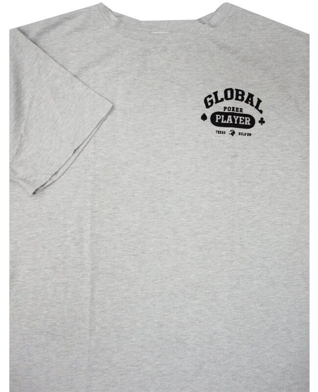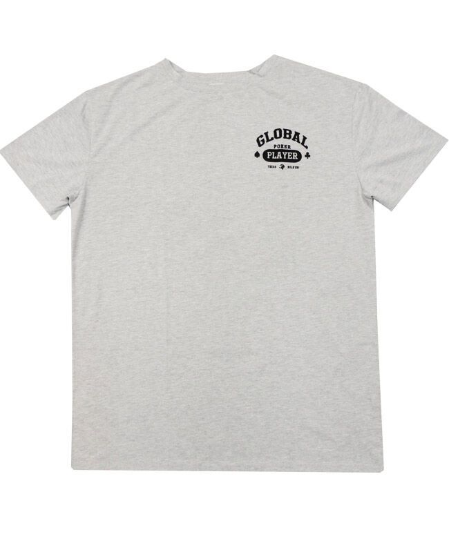 Charcoal poker t-shirt with small print on chest and full length print on the back. Made of 65% Polyester/ 35% Cotton.