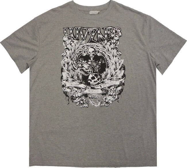 Charcoal t-shirt with large serpent print. Made of 65% Cotton, 30% Polyester and 5% Spandex.