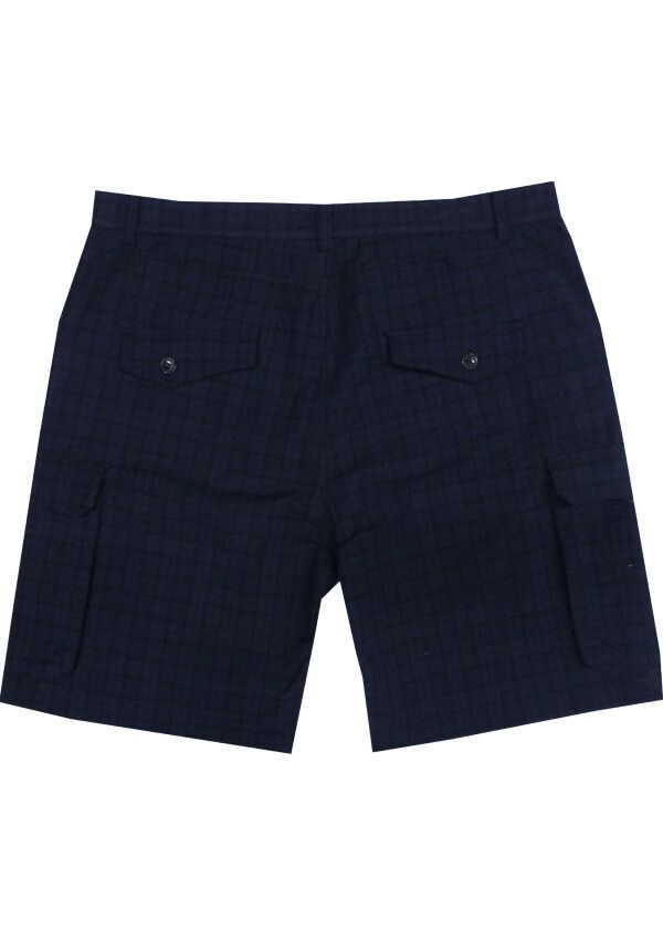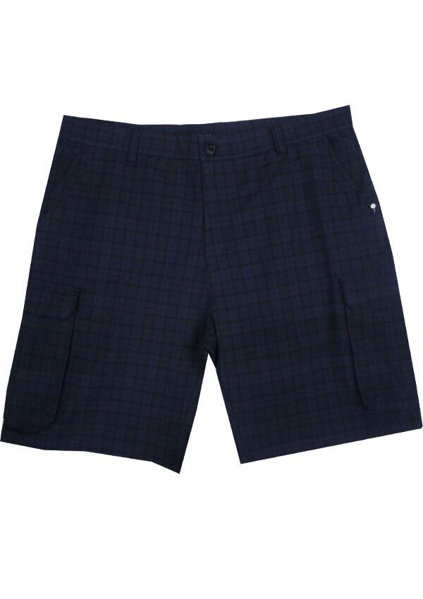 Charcoal Tartan Check cargo shorts. Fitted waist. Belt loops and zip fly. Six pockets. Made of 100% Cotton.