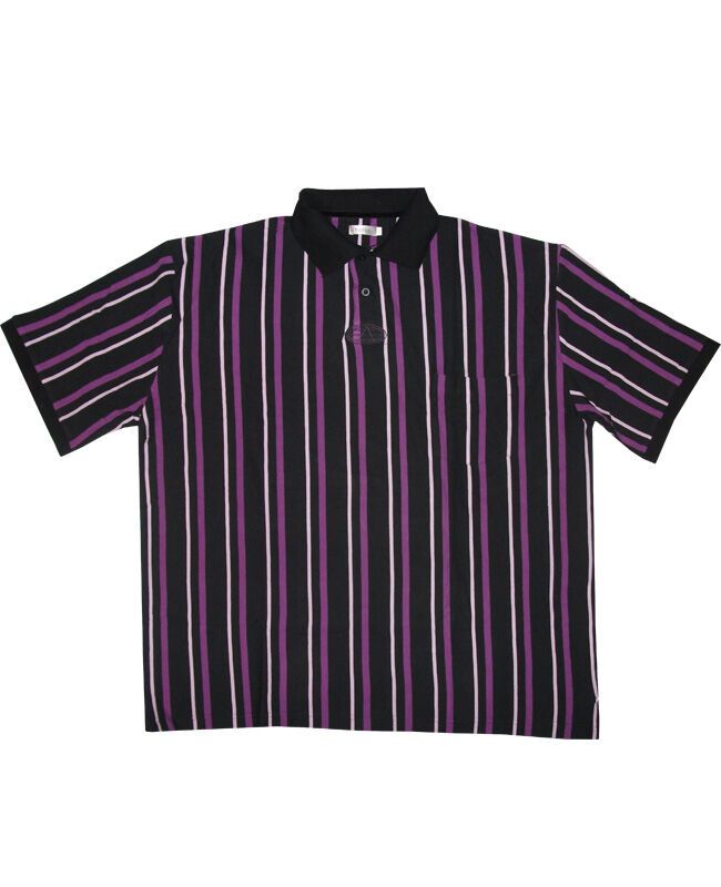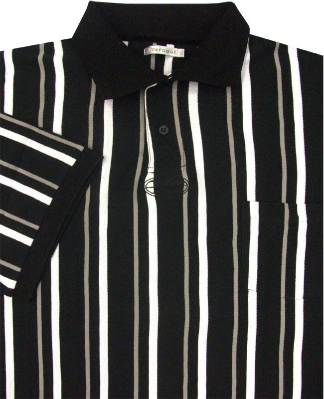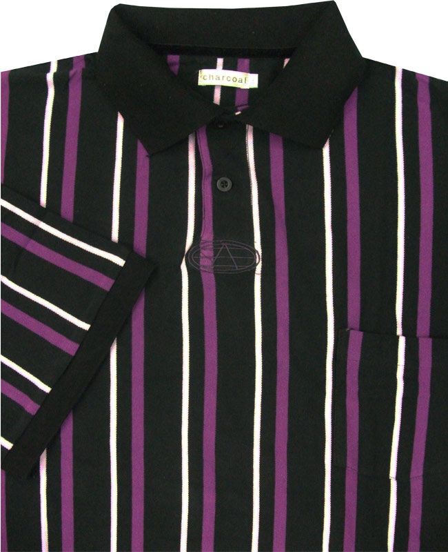 Charcoal vertical striped polo with chest pocket. Made of 100% Cotton.