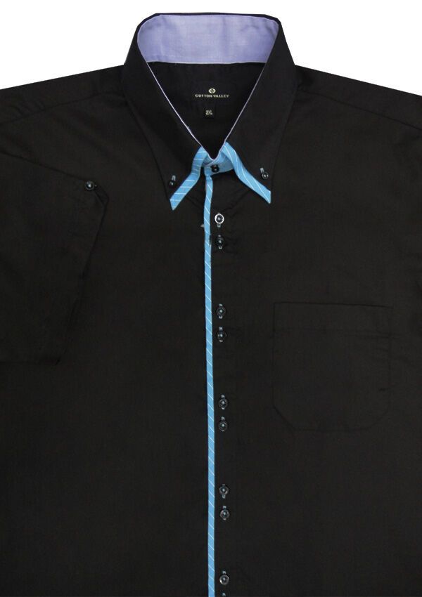 Cotton Valley DB Black short sleeve shirt. With single chest pocket. Button collar. Made of 65% Polyester/ 35% Cotton.