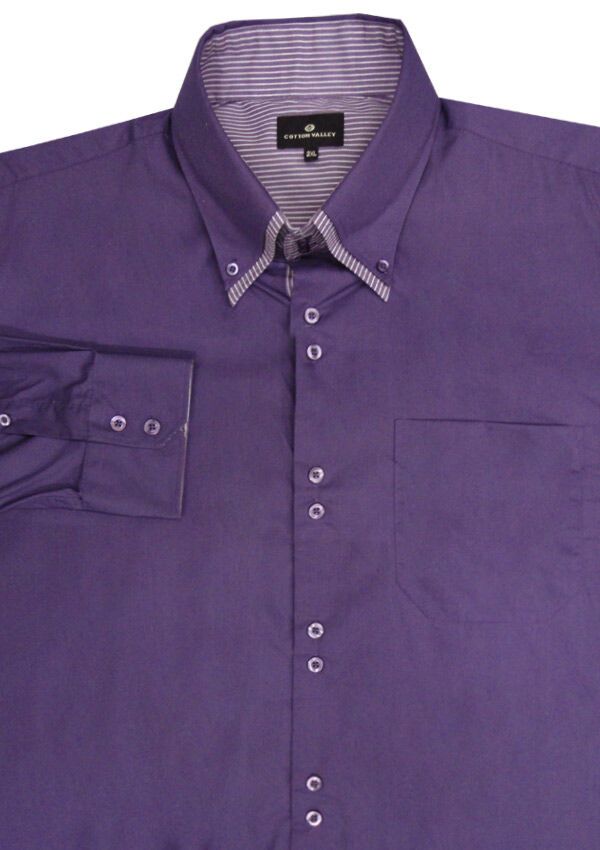 Cotton Valley DB Grape long sleeve shirt. With single chest pocket. Button collar. Stripe pattern inside collar and cuffs. Made of 65% Polyester/ 35% Cotton.
