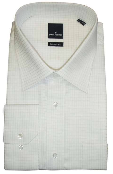 Daniel Hechter tailored fit polyester / cotton blend long sleeve business shirt. Features a double cuff and spread collar.