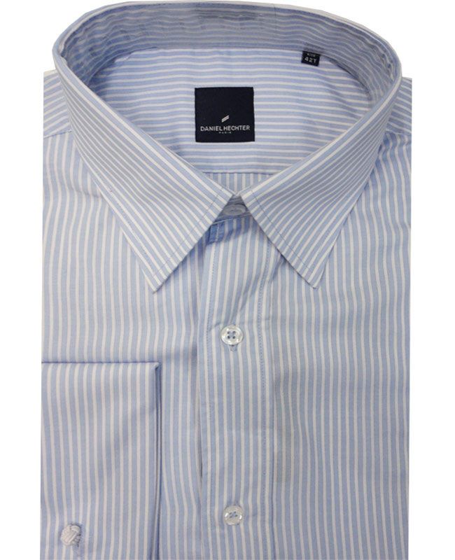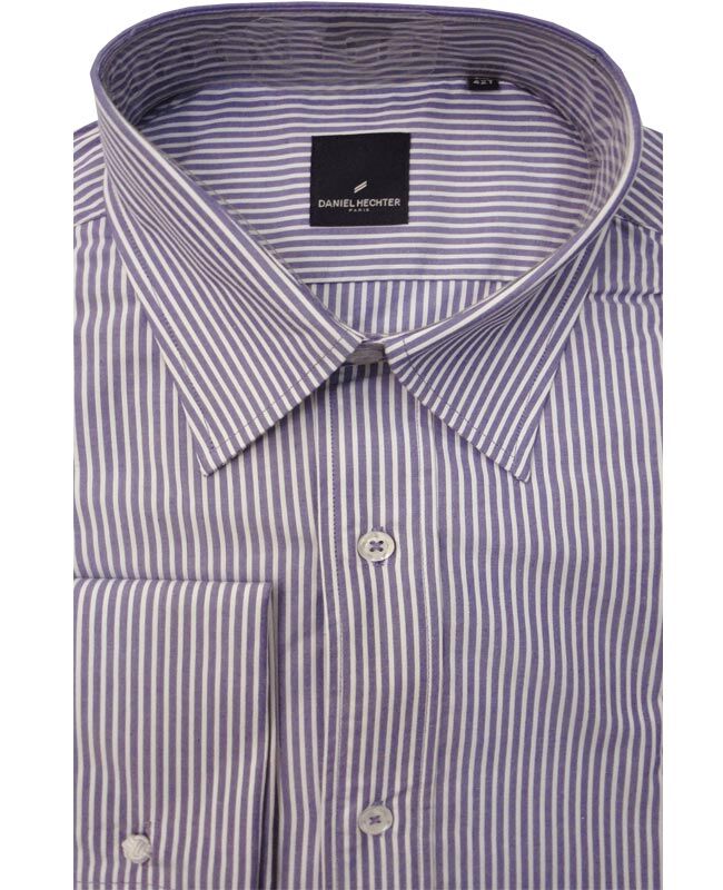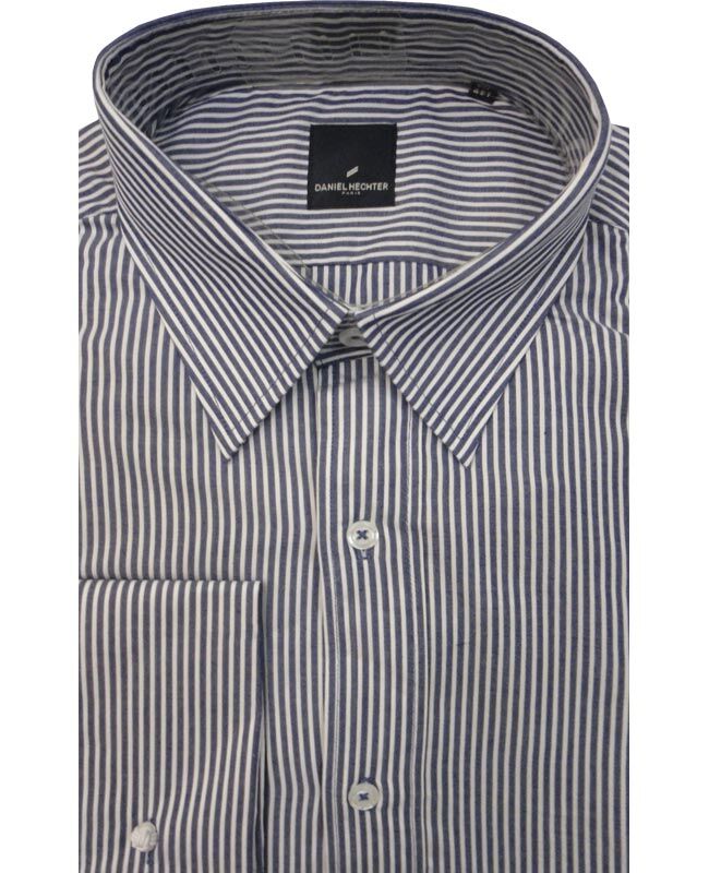 Daniel Hechter striped tall collar attached business shirt with long sleeves. Made of 100% Cotton.