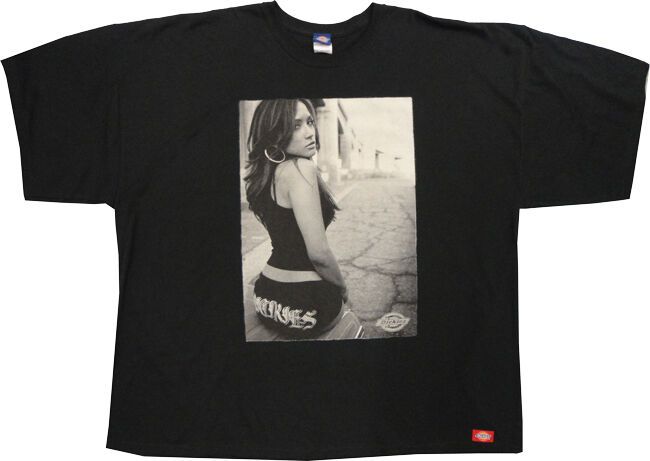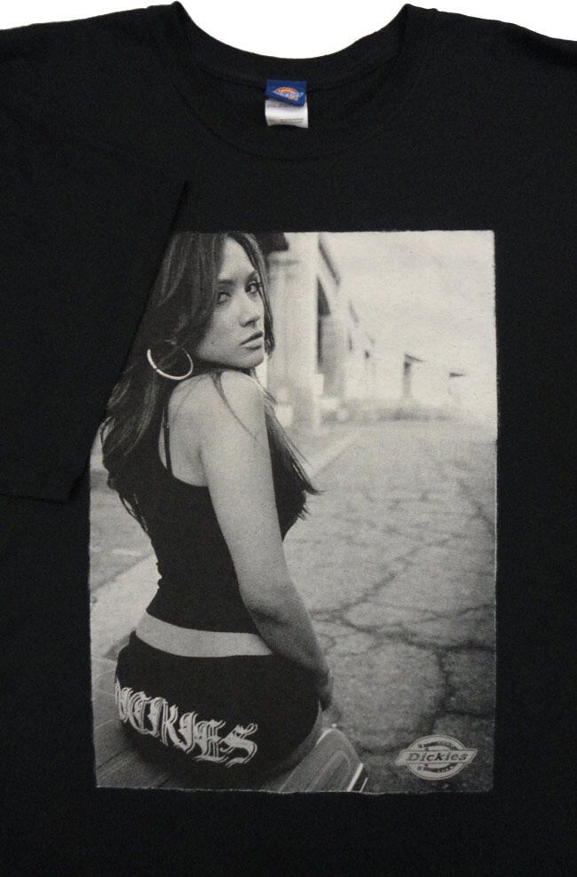 Dickies t-shirt with large print of a hot chick. Made of 100% Cotton.