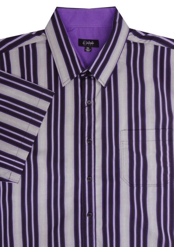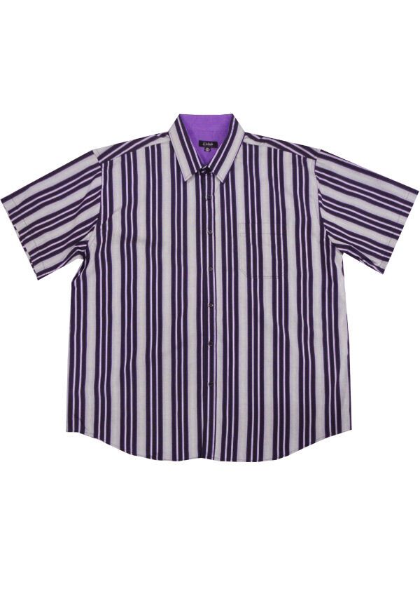 Dumaurier Stripe short sleeve shirt with single chest pocket. Button collar. Made of Pure Cotton.