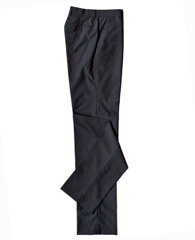 Flair plain pinstriped tall trouser with zip fly, french bearer, belt loops, hidden fob pocket in waistband and four pockets. Made of 51% Wool, 49% Polyester. Inside leg measures 38" (97cm)