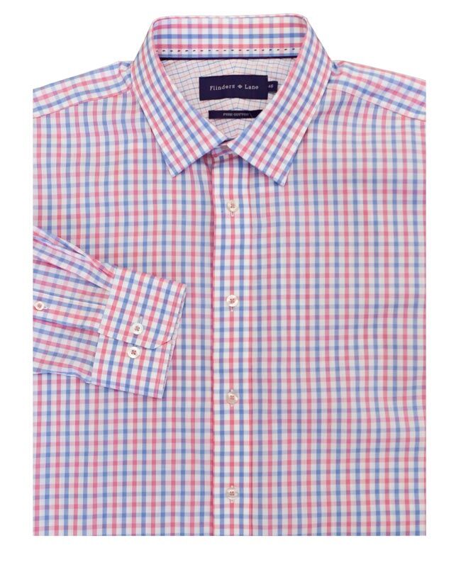 Flinders Lane Gingham long sleeve shirt. No pockets. 100% Cotton.