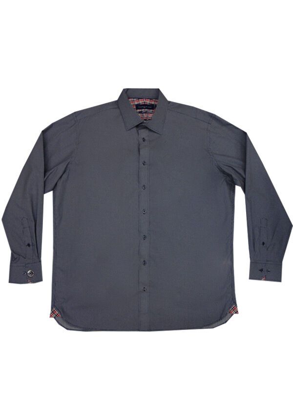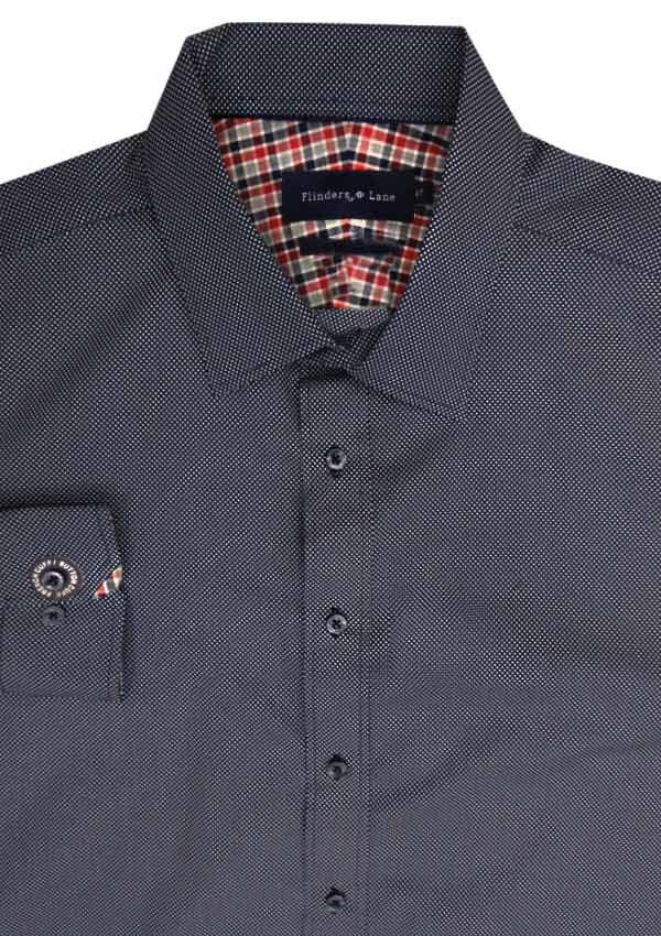Flinders Lane Pindot long sleeve shirt with checkered pattern inserts on inside of cuffs, collar and hem.  Will fit cufflinks.  Made of 100% Cotton.