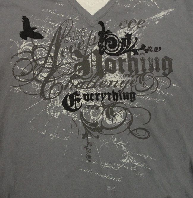 The time is now, get your charcoal flocking print t-shirt. Looks great with jeans. 100% cotton. Note: These are a small cut. Please see size guides below.
