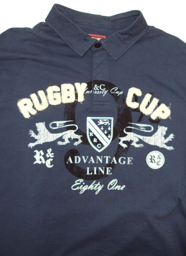 100% cotton, rugby motif short sleeve polo. Soft cotton.