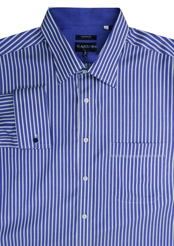 Ganton Bold Stripe long sleeve business shirt. Single chest pocket. Button collar. Made of Pure Cotton.