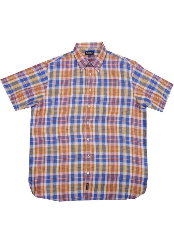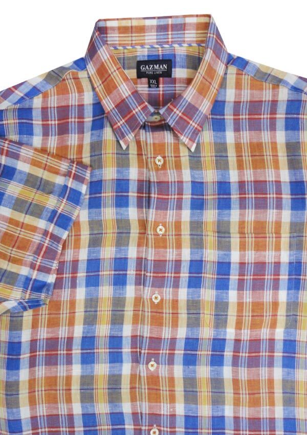 Gaz Man Check Linen short sleeve shirt. With single chest pocket. Button collar. Made of 100% Linen.