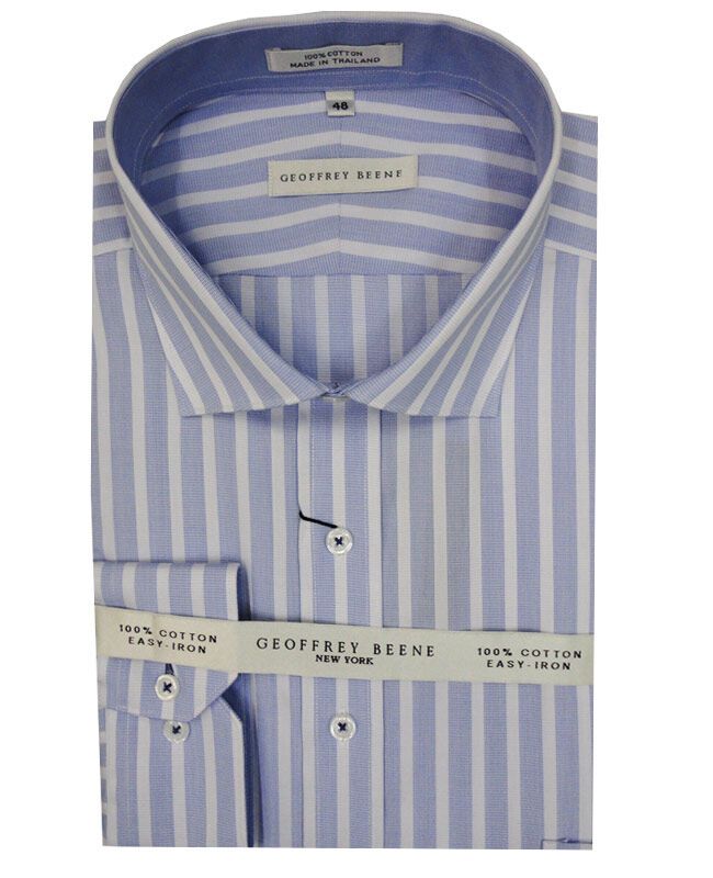 Geoffrey Been long sleeve stripe business shirt with single chest pocket. Easy Iron. Made of 100% Cotton.