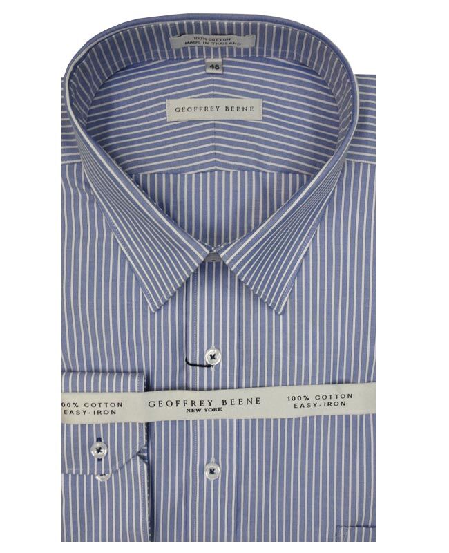 Geoffrey Beene long sleeve stripe business shirt with single chest pocket. Easy iron. Made of 100% Cotton.