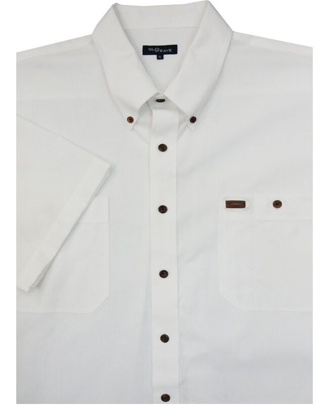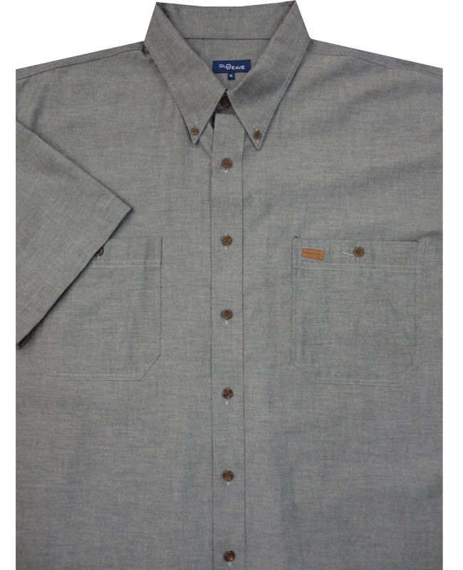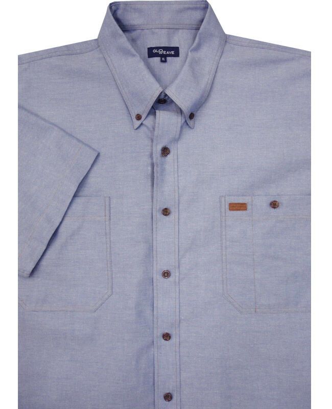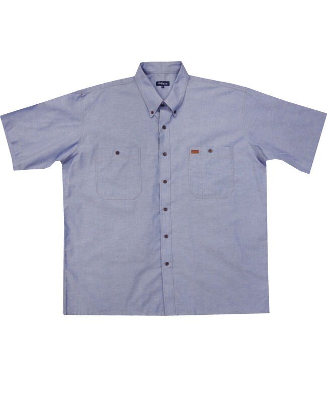 Durable Double Pocket short sleeve shirt, with button down collar and leather trim on pocket. Stylish and very popular as an up-market workshirt. Great smart/ casual shirt. Made of 100% Cotton. Nb. Black is more of a charcoal grey colour. See photo.
