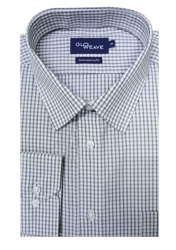Gloweave Check long sleeve business shirt in a contemporary fit, with single chest pocket and button collar. Made of Cotton/ Polyester.