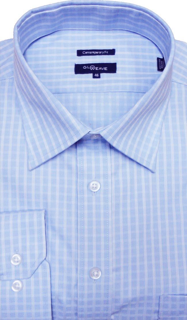 Gloweave check business shirt. Long sleeve, collar attached. Made with cotton/ polyester.