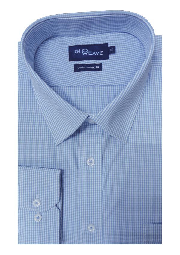 Gloweave Gingham long sleeve business shirt in a contemporary fit with single chest pocket and button collar. Made of Cotton/ Polyester.